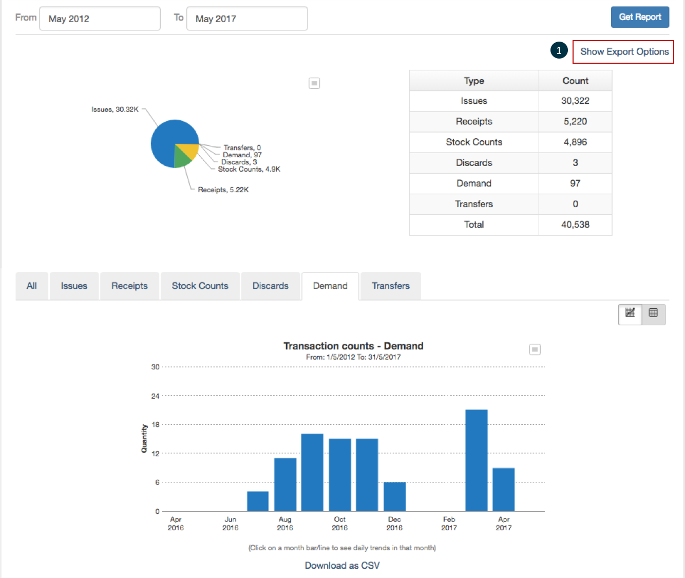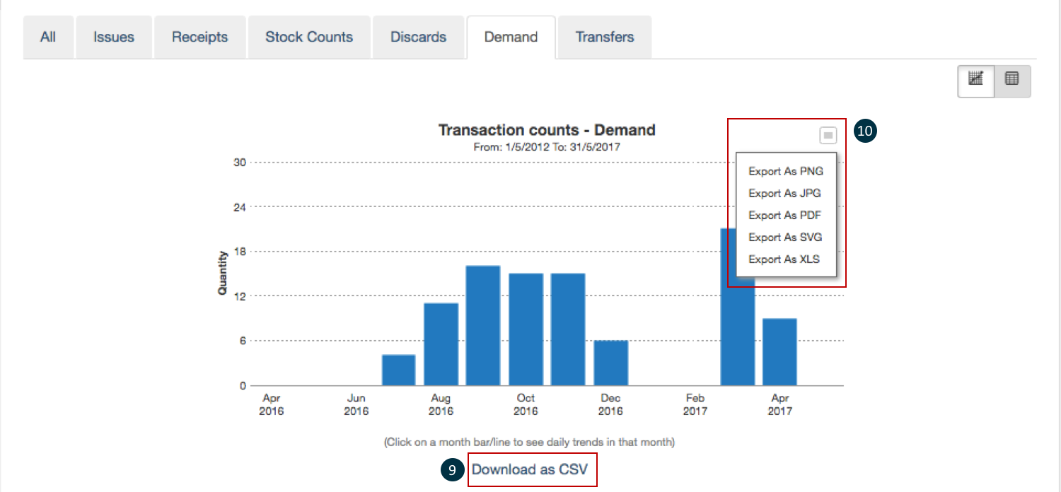 4. Click on the Demand sub-tab from the Transactions counts menu
