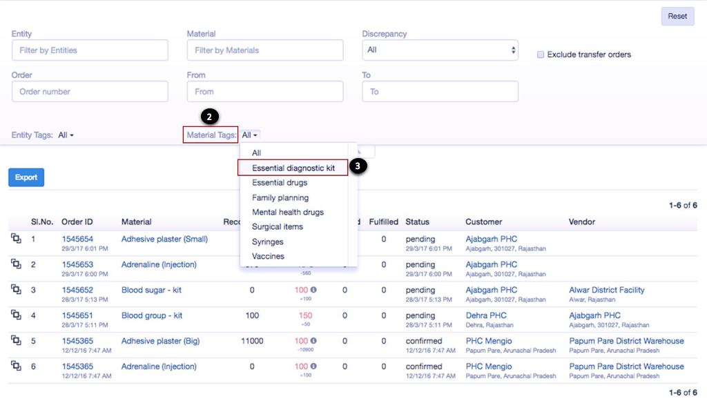 - Material Tag: This drop-down index provides a list of discrepancies of all the materials, belonging to the selected category