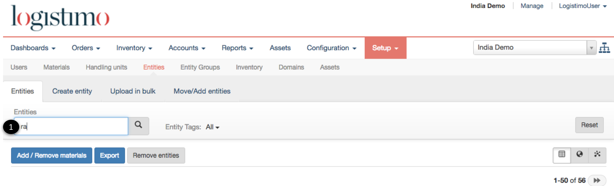 1. Type the first few alphabets of the entity that is being searched in the search box