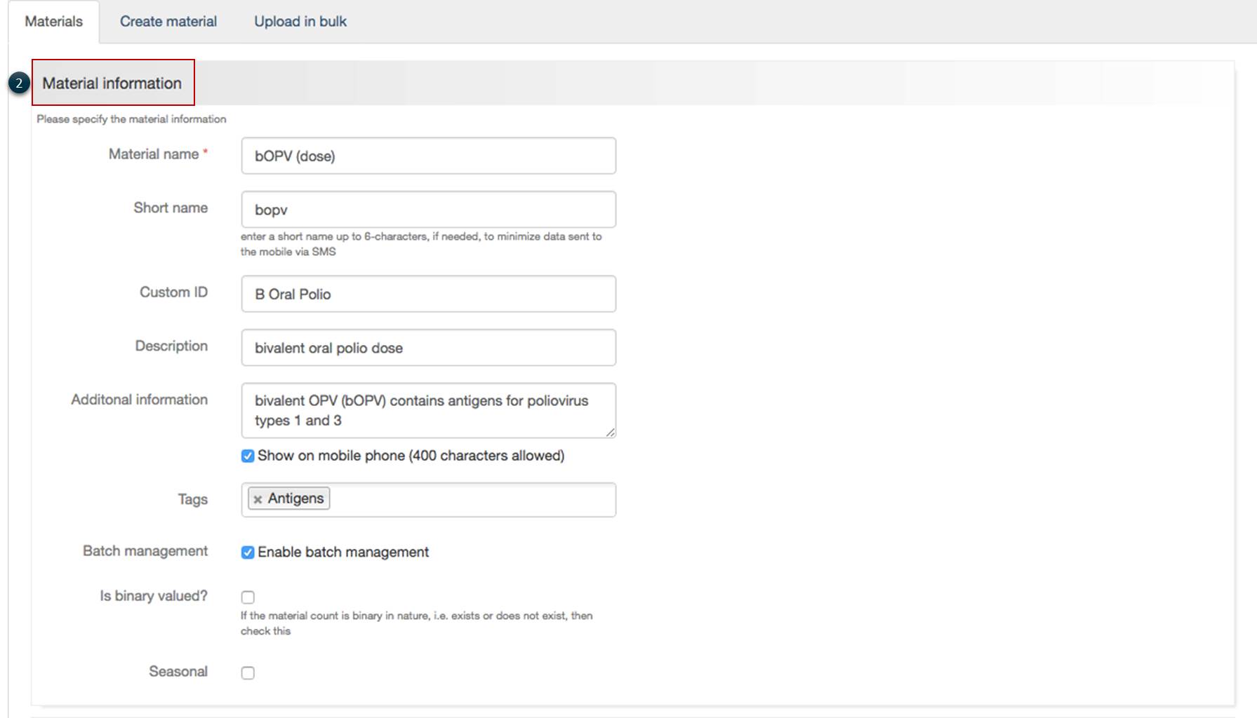 11. Seasonal: check the box If the material is seasonal
