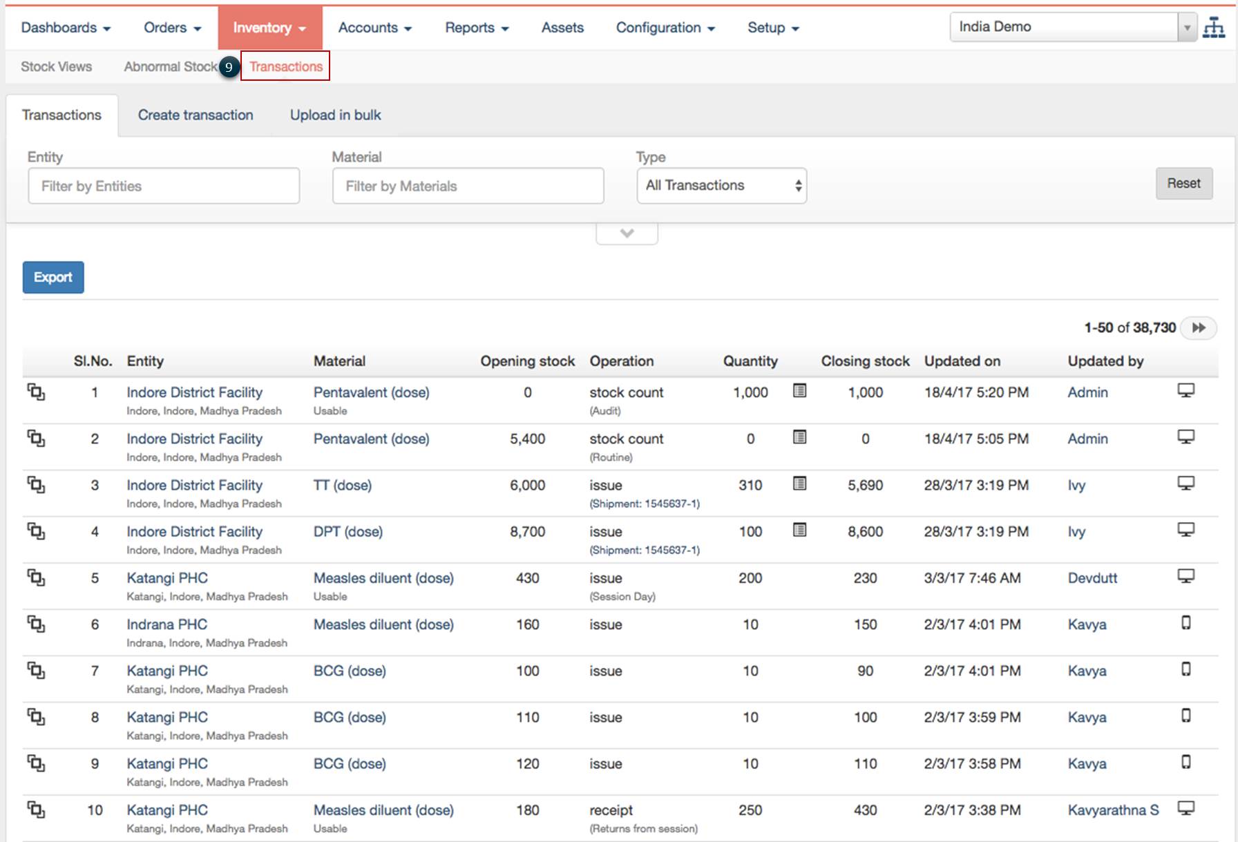 9. View inventory transactions